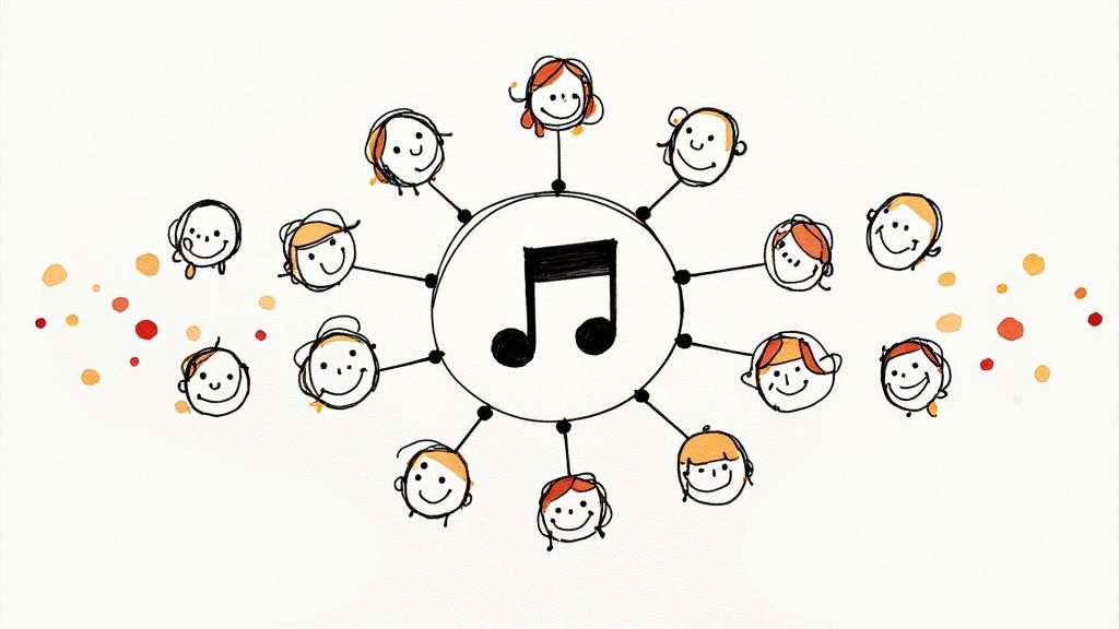 Landing your music on playlists is a direct injection of visibility, placing your sound in front of thousands of potential new fans. While third-party playlists are great, the most sustainable strategy is to build your own. Creating and growing your own themed playlists is a powerful way to market music because it builds a community, establishes you as a curator, and gives you a direct, long-term channel to your listeners that you control.